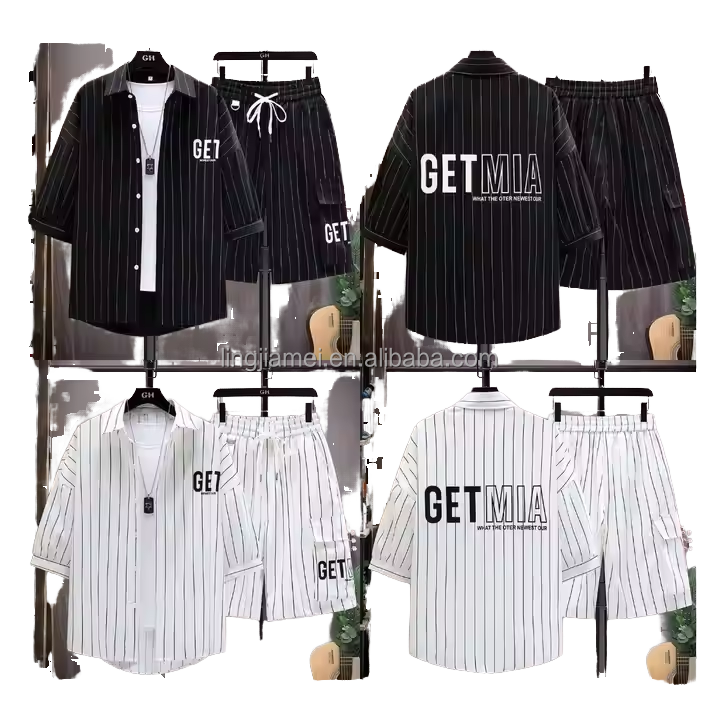 Wholesale Men's Summer Casual Short Sleeved T-Shirt Vintage Two-Piece Shorts Suit Breathable Velour Fabric Embroidered Features