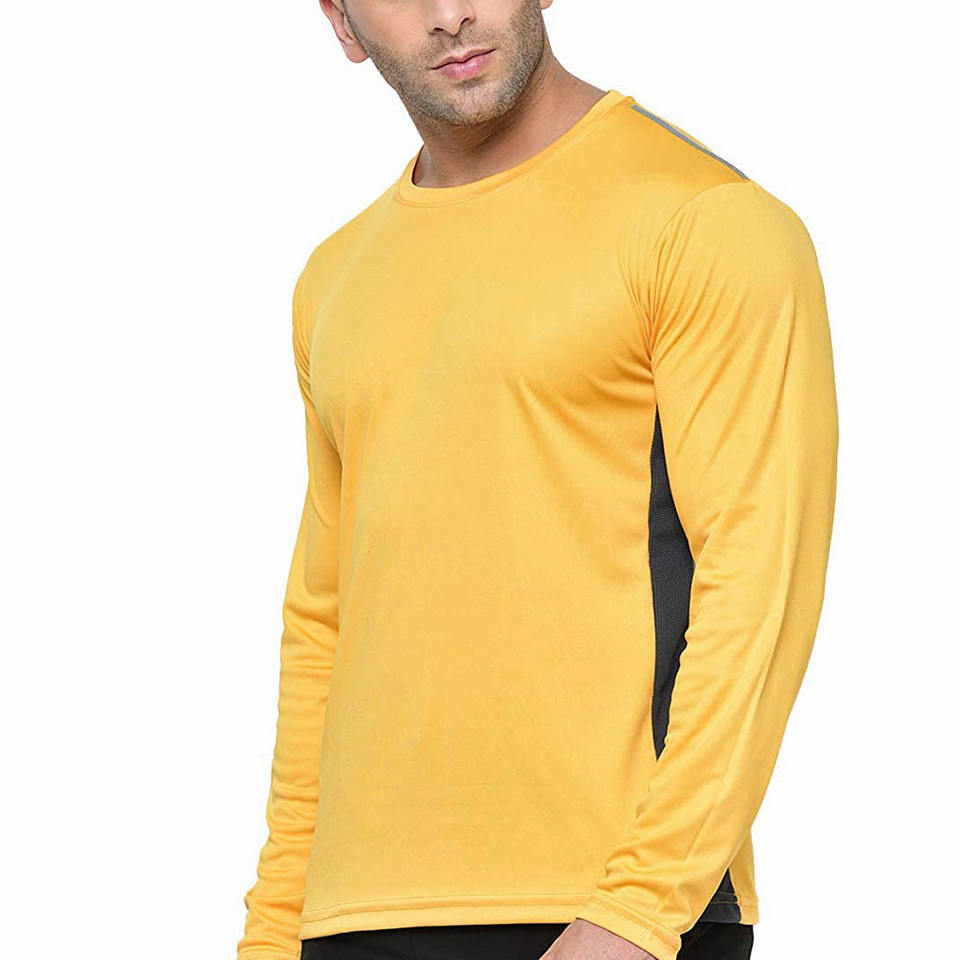 Adult Men's Yellow Color T-Shirt Full Sleeve Round Neck Slim Fit Polyester Made Summer T-Shirt With Custom Design And Size