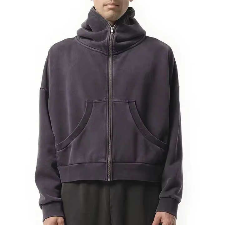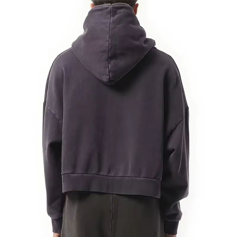 Wholesale Mens Acid Wash Hoodie Vintage Zip Up Plain Cropped Hoodie With Custom Embroidery Logos Hoodies