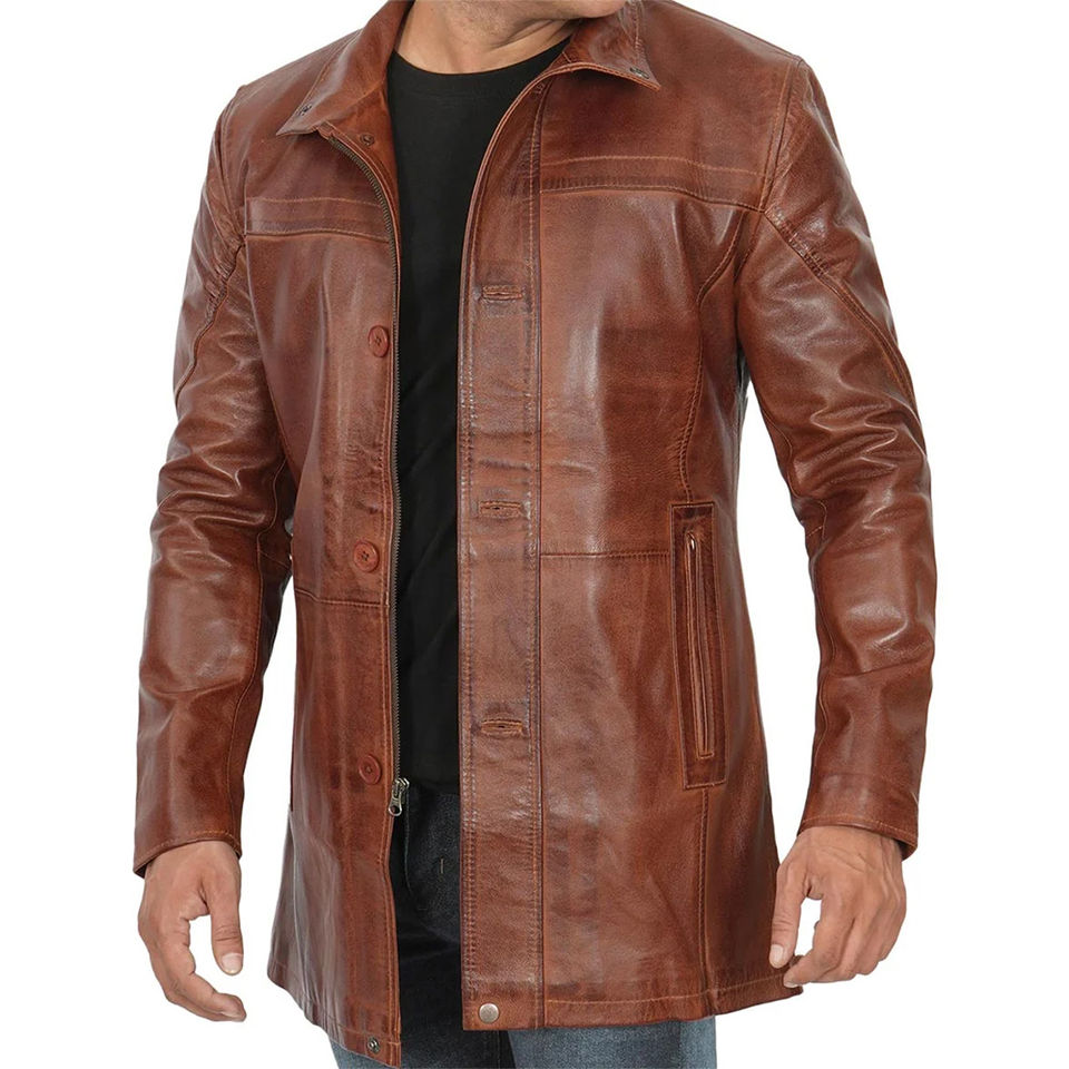 Wholesale Mens Long Leather Coats with Premium Quality jacket for men Custom Embossed Patterns Winter Men Leather Wear
