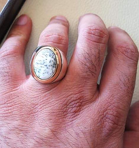 Wholesale Mens Ring Natural Dendritic Opal Gemstone Christmas Birthday Gift Arabic Ottoman Ring Jewelry 925 Sterling Silver Ring