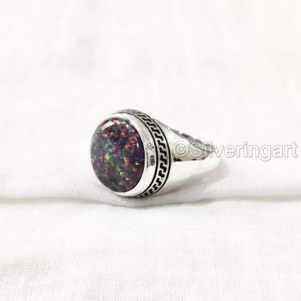 Wholesale Mens Ring Natural Round Black Opal Gemstone October Birthstone Engagement Gift Jewelry 925 Sterling Silver Ring
