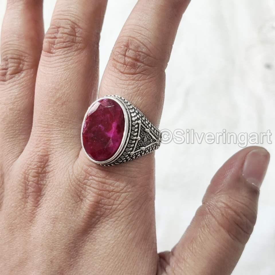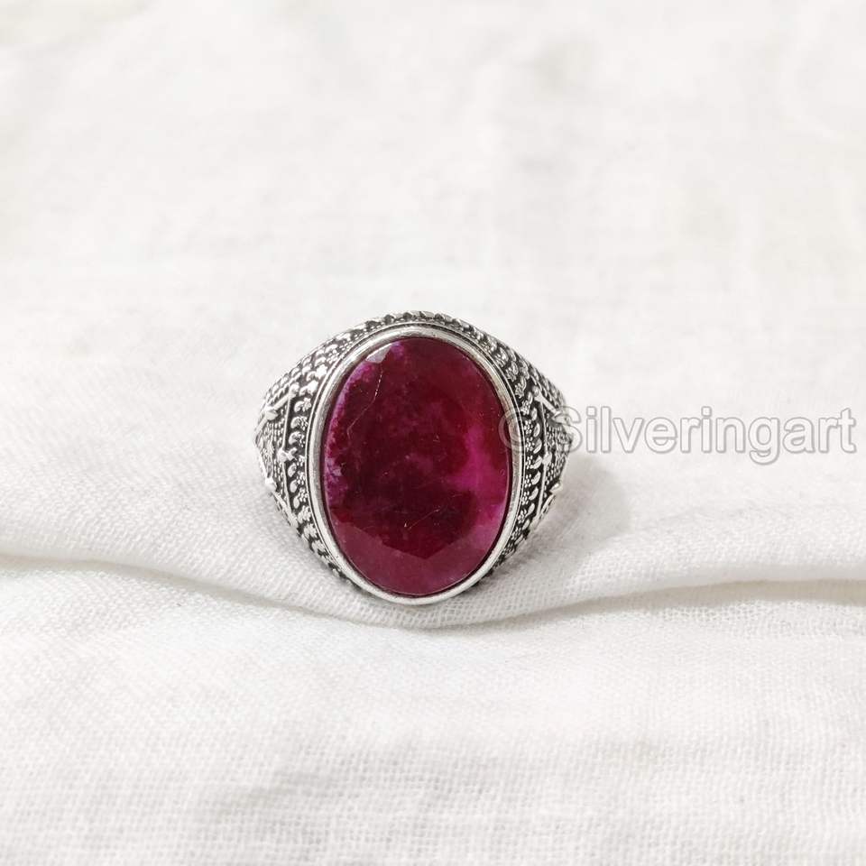 Wholesale Mens Ring Natural Ruby Corundum Gemstone July Birthstone Ottoman Style Christmas Jewelry 925 Sterling Silver Ring