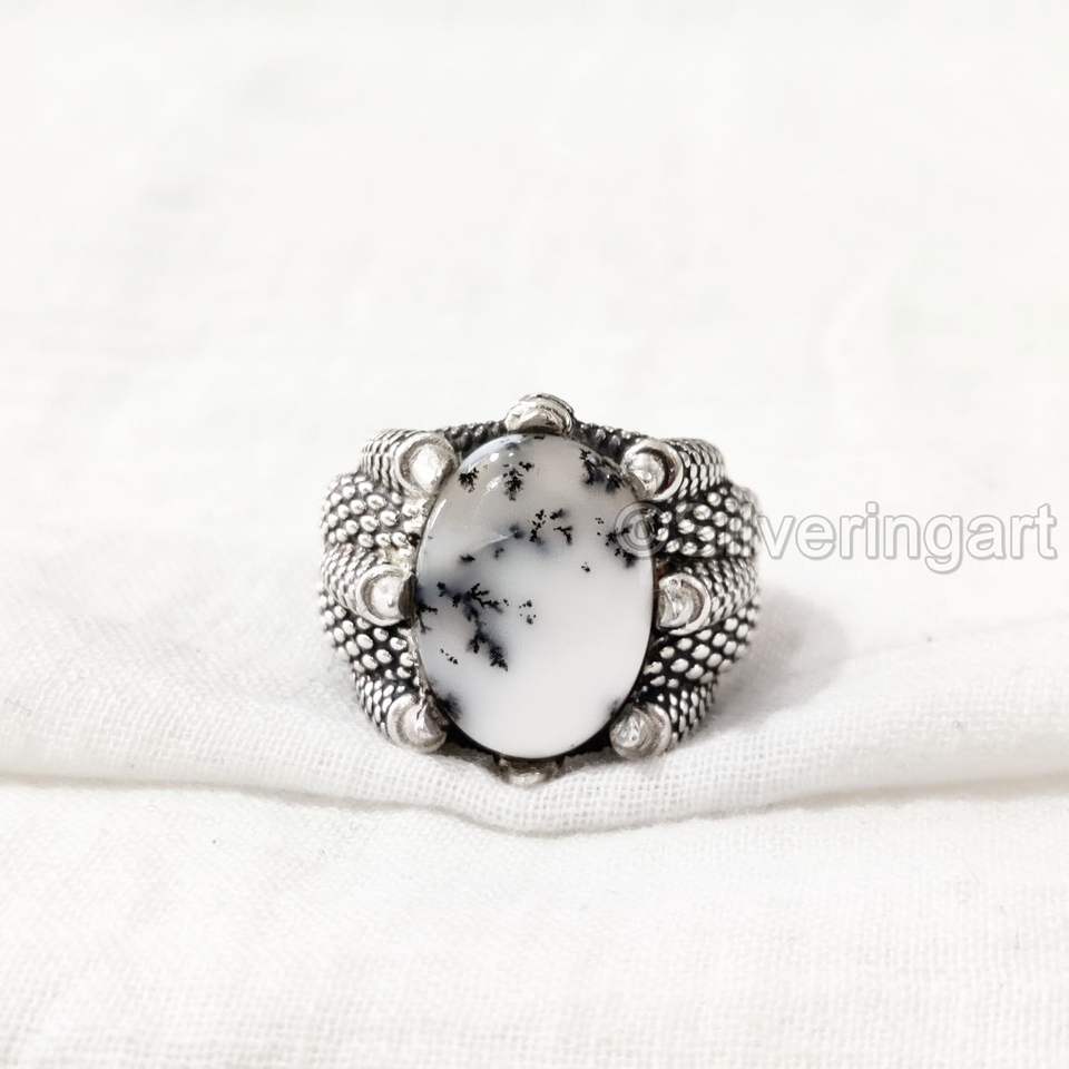 Wholesale Mens Ring New Arrival Natural Dendrite Opal Gemstone October Birthstone Wedding Jewelry 925 Sterling Silver Ring