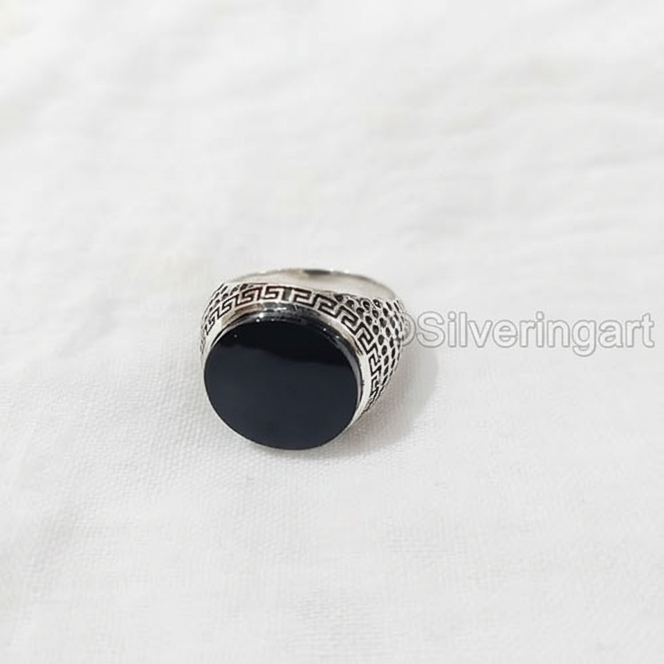 Wholesale Mens Ring New Arrival Natural Black Onyx Gemstone December Birthstone Arabic Design Jewelry 925 Sterling Silver Ring