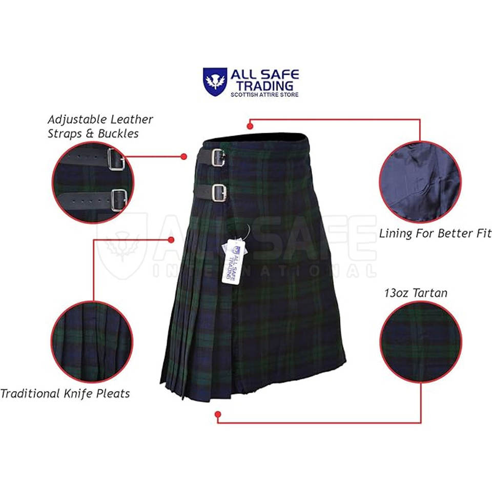 Product name:Mens Scottish Utility Tartan Kilt With Multi Pocket Design