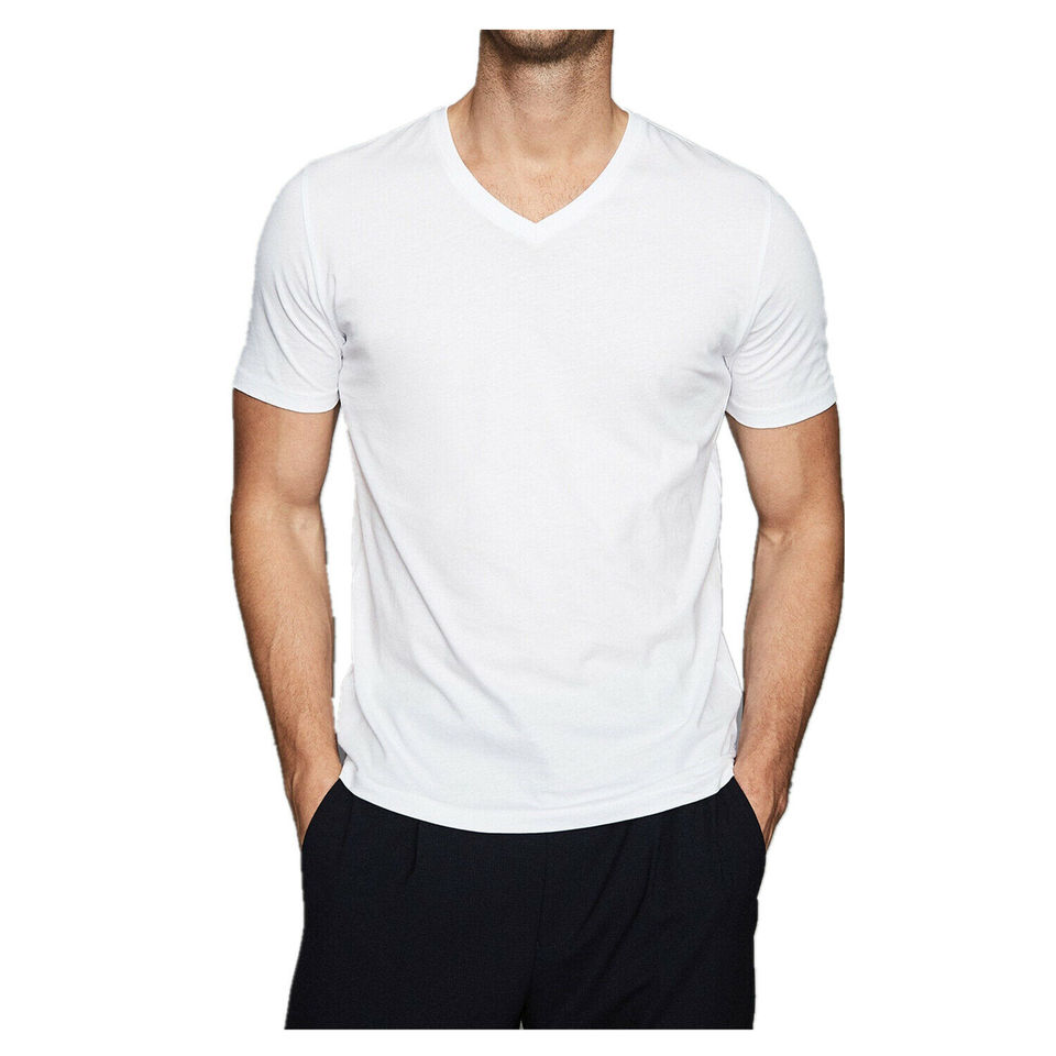 Wholesale Mens V Neck T Shirts 100% Cotton Eco-Friendly Breathable White Blank Slim Fit Plain Tee Custom Logo Printing Soft