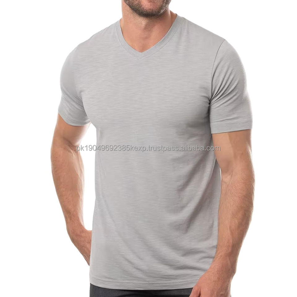 Wholesale Mens V Neck T Shirts 100% Cotton Plain Color Large Size Short Sleeve Casual Breathable Eco-Friendly Soft Comfortable