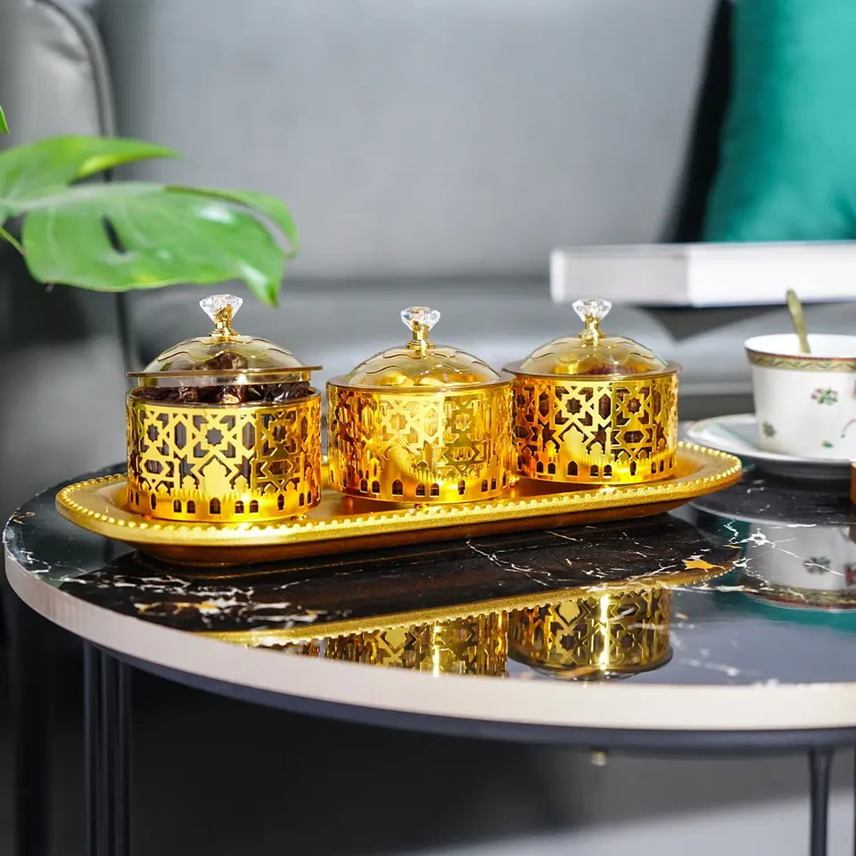 Wholesale Metal Ramadan Decoration 2026 Ramadan Mubarak Home Decor Tray Laser Cut Arabic Calligraphy Gold Star & Moon from India