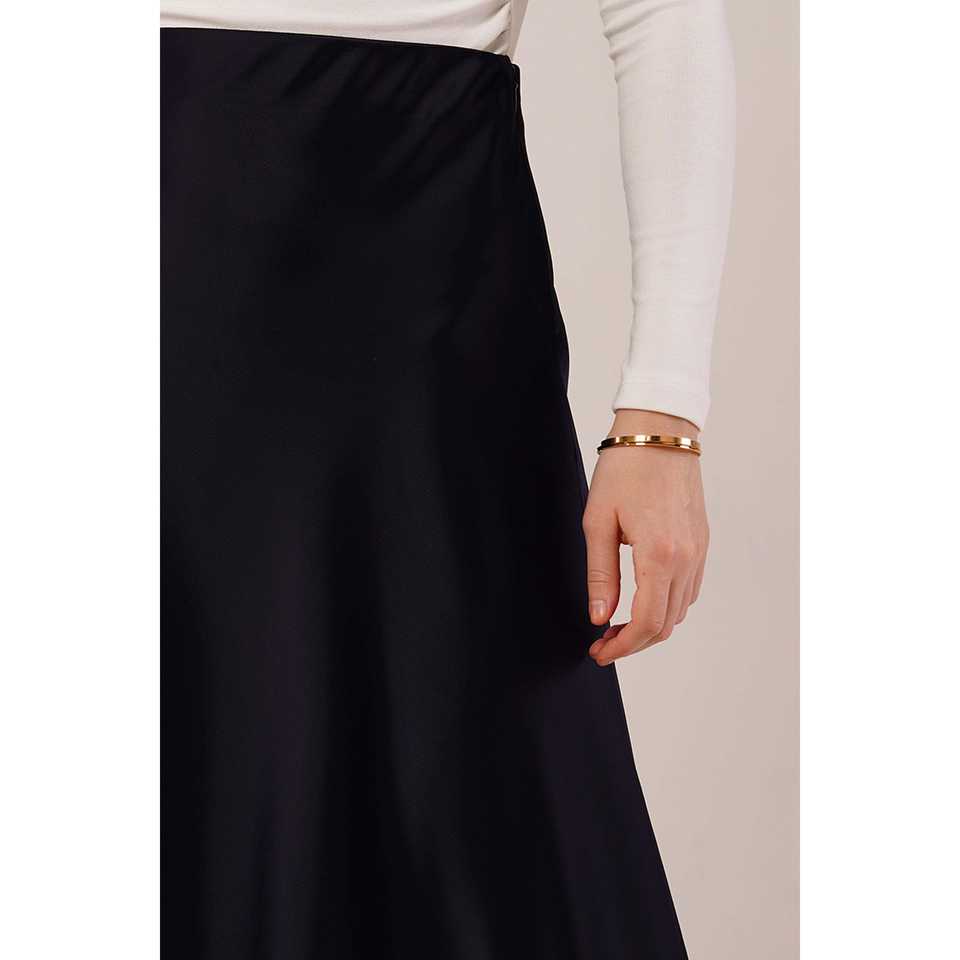 Wholesale Midi A-Line Navy Blue Satin Skirt Bell-Shape Button Decoration Casual Sexy Style Skinny Fit Summer Autumn Spring Light