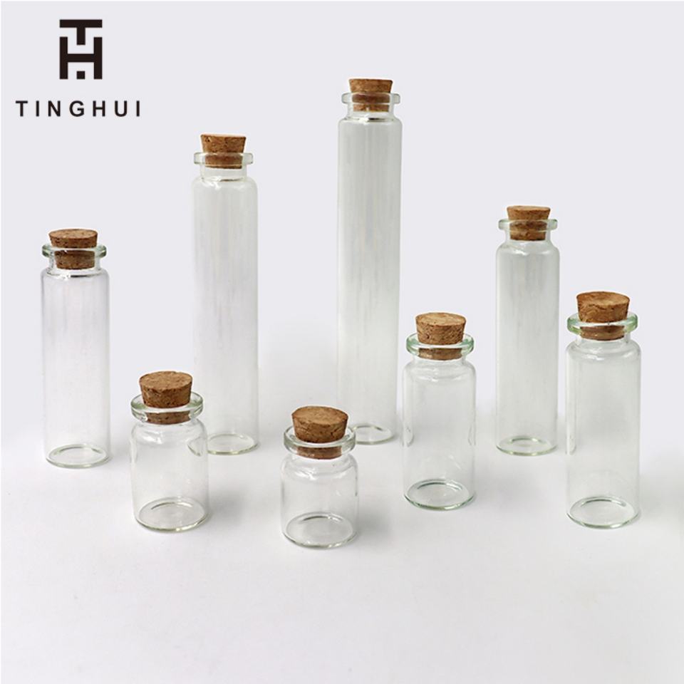 Wholesale Mini Clear Glass Wishing Small Drift Bottle Vials With Cork Glass Tube Corked Jars Candy Bottle