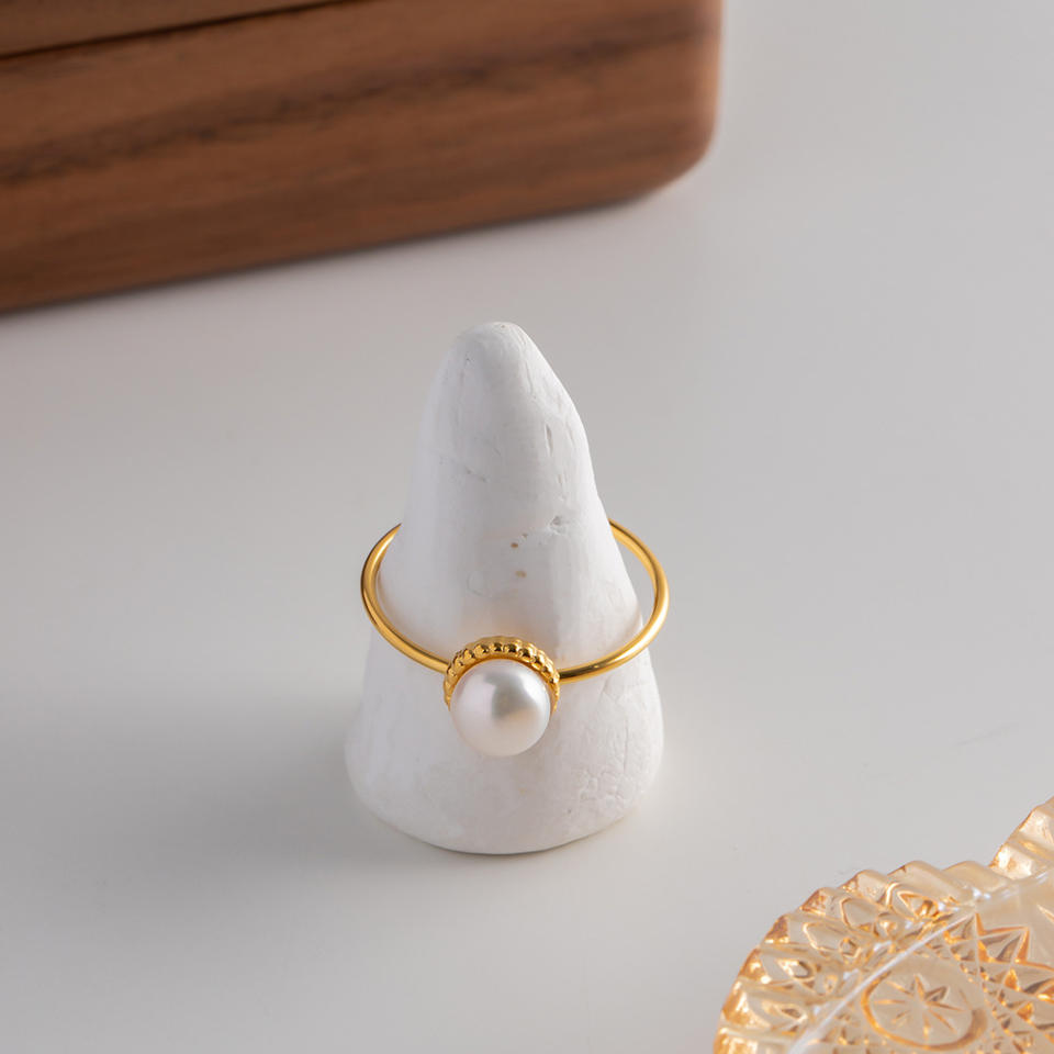Wholesale Minimalist Fashion Jewelry Rings Adjustable Women Classic Stainless Steel Freshwater Pearl Ring