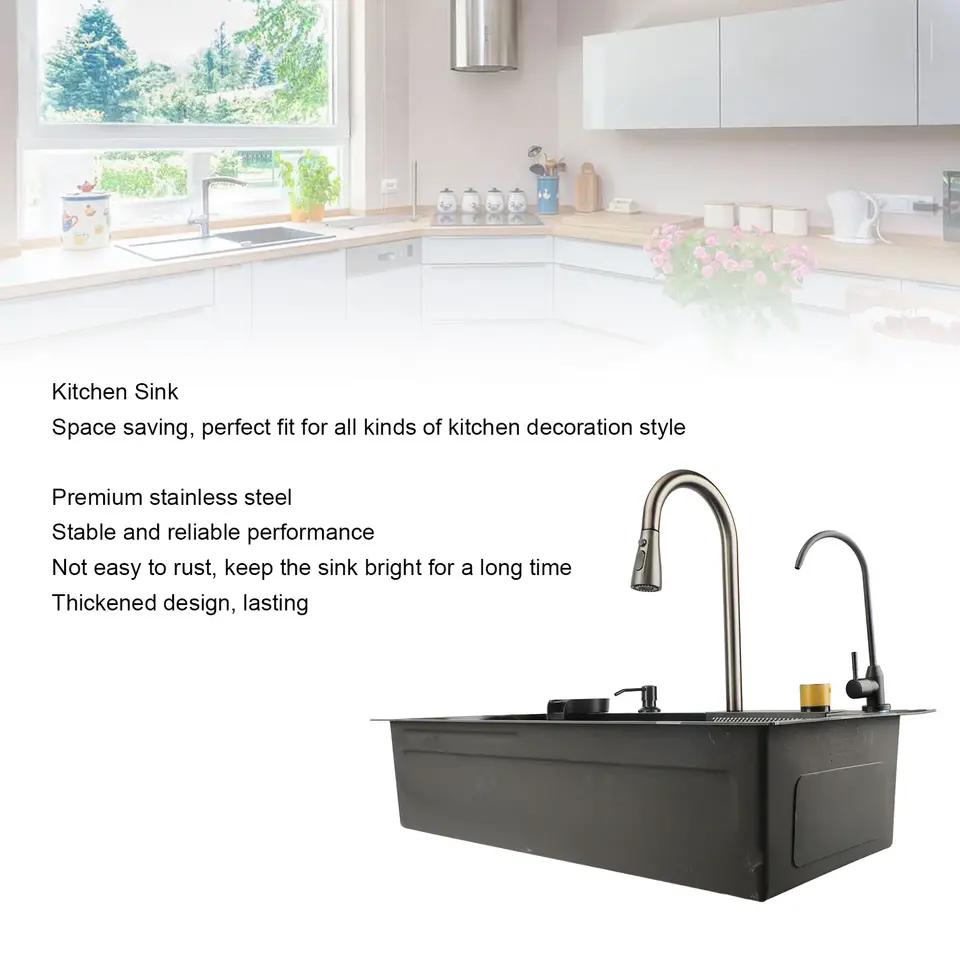 Wholesale Modern Above Mounted Kitchen Steel Water Sink with Faucet Nano Single Bowl Handmade 304 Rectangle Shape