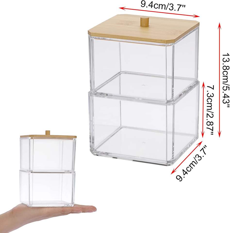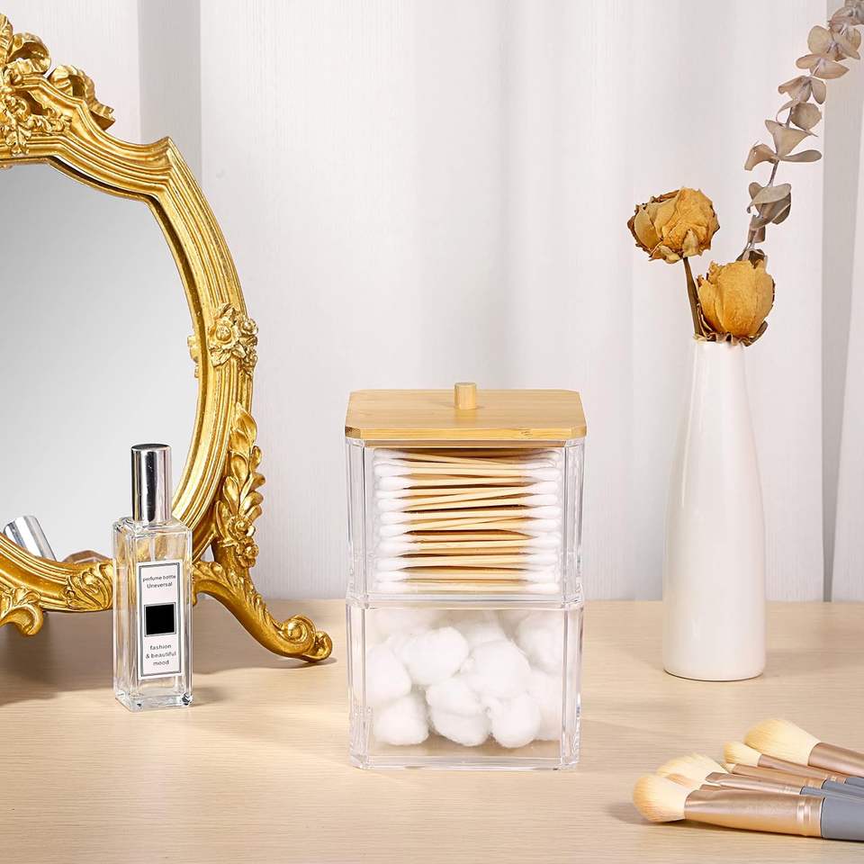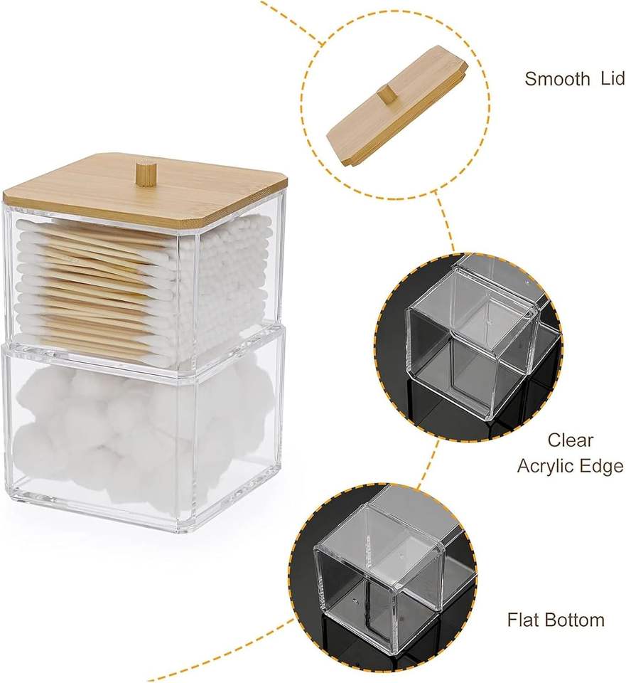 Wholesale Modern Acrylic Qtip Holder Dispenser Durable Wood Lid Cotton Swab Pad Stand for Store Display Only