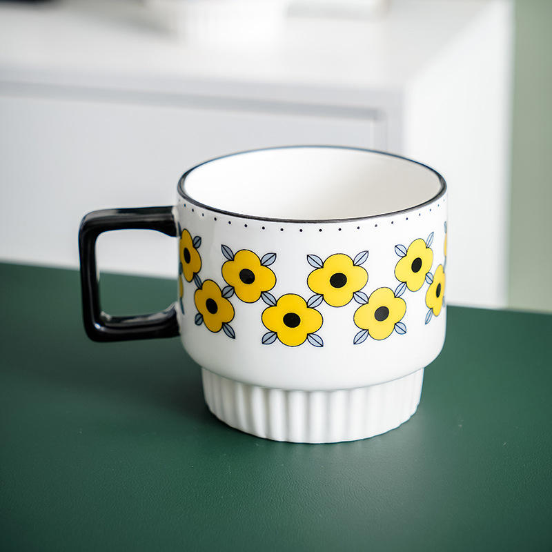 Wholesale Modern Ceramic 350ml Stack Cup Breakfast Creative Dishwasher & Microwave Safe Coffee Mug