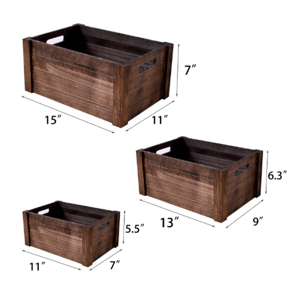 Wholesale Modern Dark Wood Solid Pine Crate Set Custom Logo Available Waterproof Eco-Friendly Storage Box Set