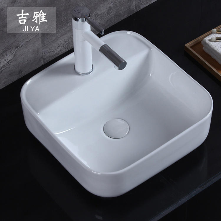 Wholesale Modern Design 204A Grade Ceramic Square Countertop Bathroom Sinks Basins 385x385x140mm Single Hole Faucet Opening Home