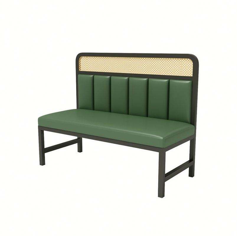 Wholesale Modern Design Black Wrought Iron Frame Backrest Braided Rattan PU Leather Sofa Booth for Restaurant Use Furniture