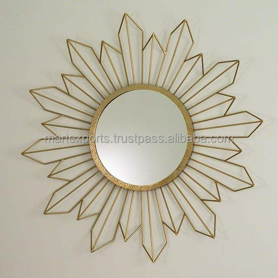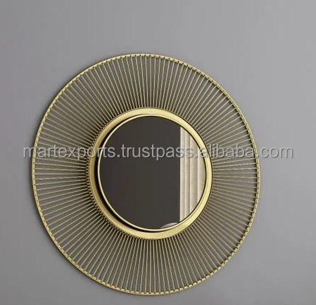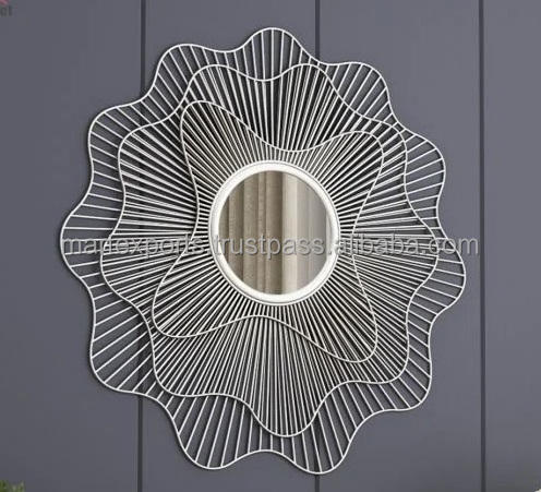 Wholesale Modern Fancy Round Iron Wall Mirror 32 Inch Handmade Luxury Design Home Decoration