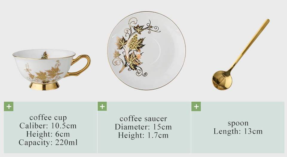 Wholesale Modern Luxury Gold Plated Porcelain Tea Coffee Cup and Saucer Set of 6 Eco-Friendly Microwave Safe Business Gift