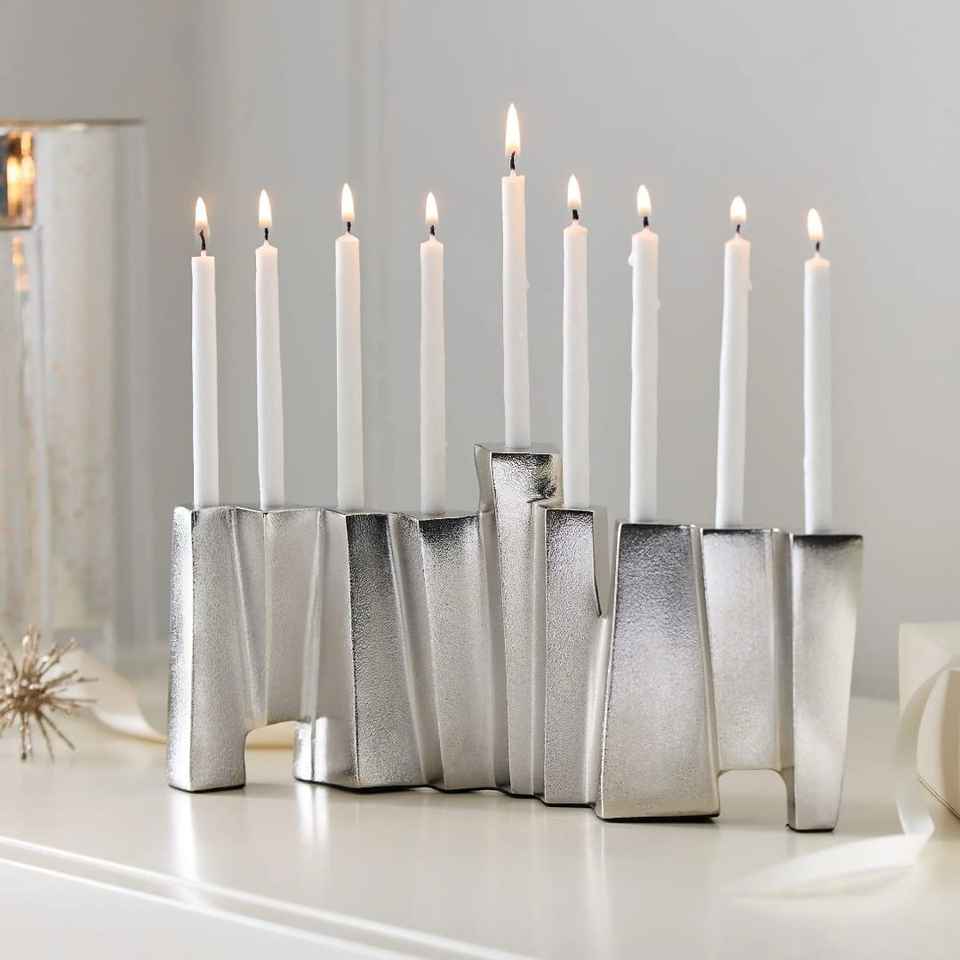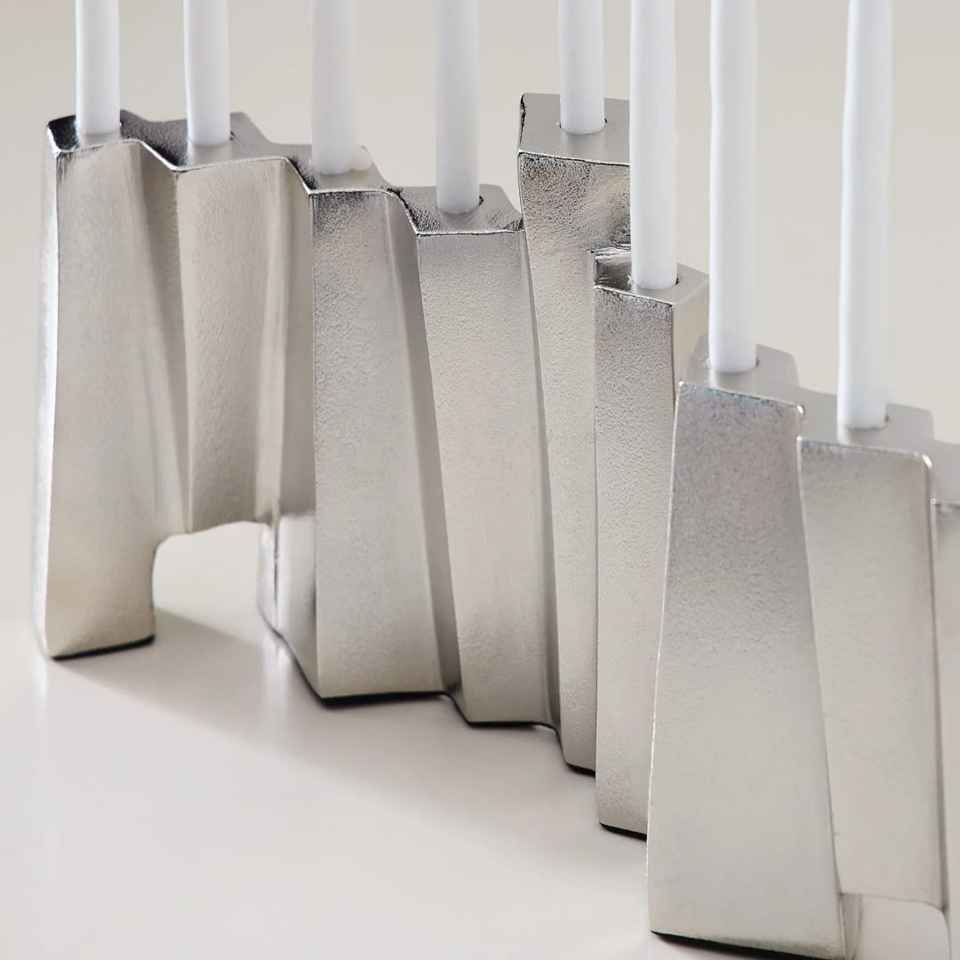 Wholesale Modern Sleek Metal Menorah Low Price Hanukkah Lantern Jars Oil Cups Customised Table Decoration Candleholders