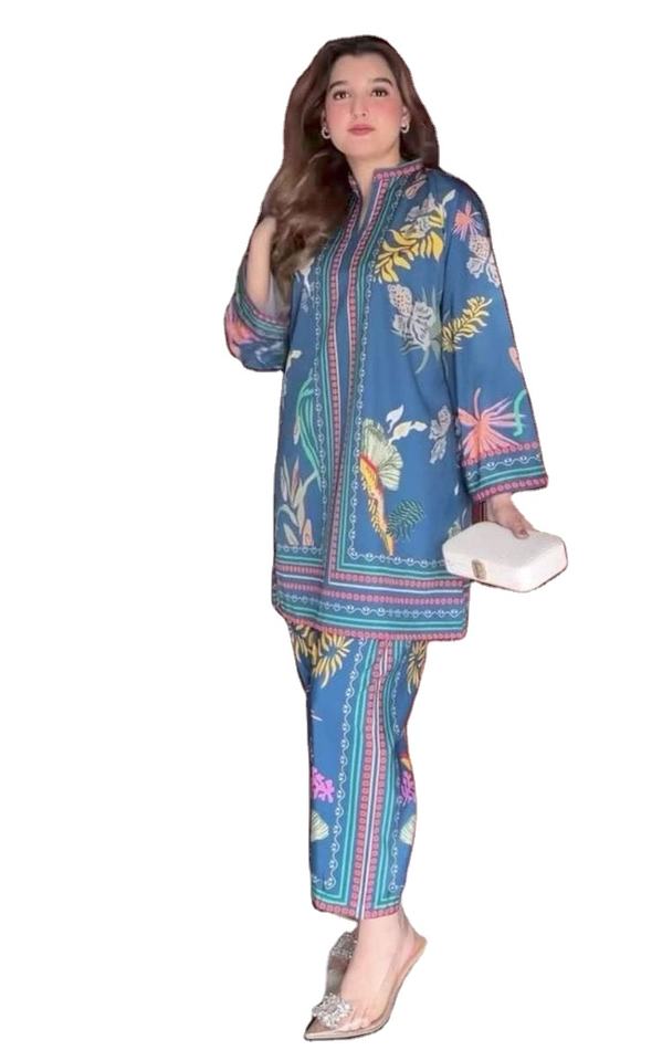 Wholesale Modest Set for Muslim Women Print Turkish Tops and Pants Suit for Islamic Women Clothing Pakistan India Embroidered