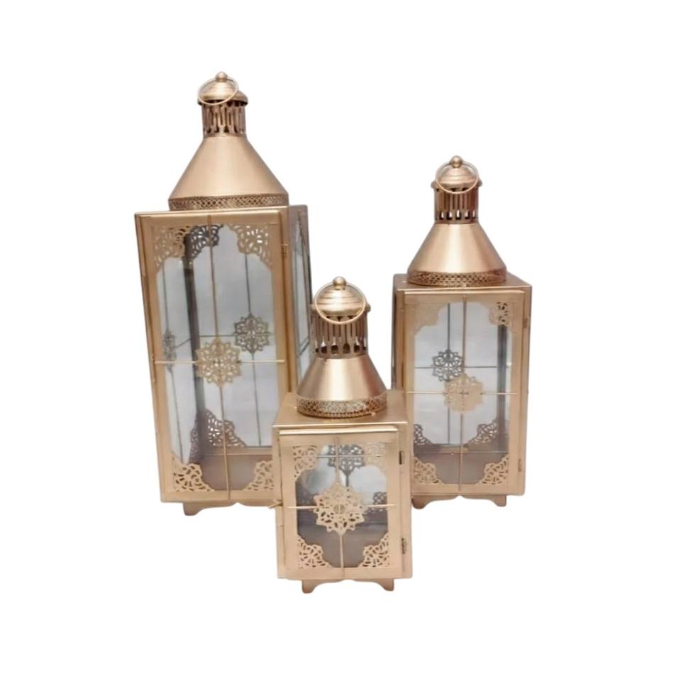Wholesale Moroccan Style Metal Christmas Candle Lantern Grey Iron Glass Hanging Arabic Decorative Tabletop Eco-Friendly Handmade
