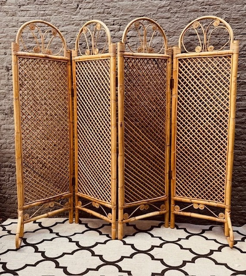 Wholesale Multi-Functional Double Hinged Rattan Room Divider Free-Standing Privacy Screens for Home Use
