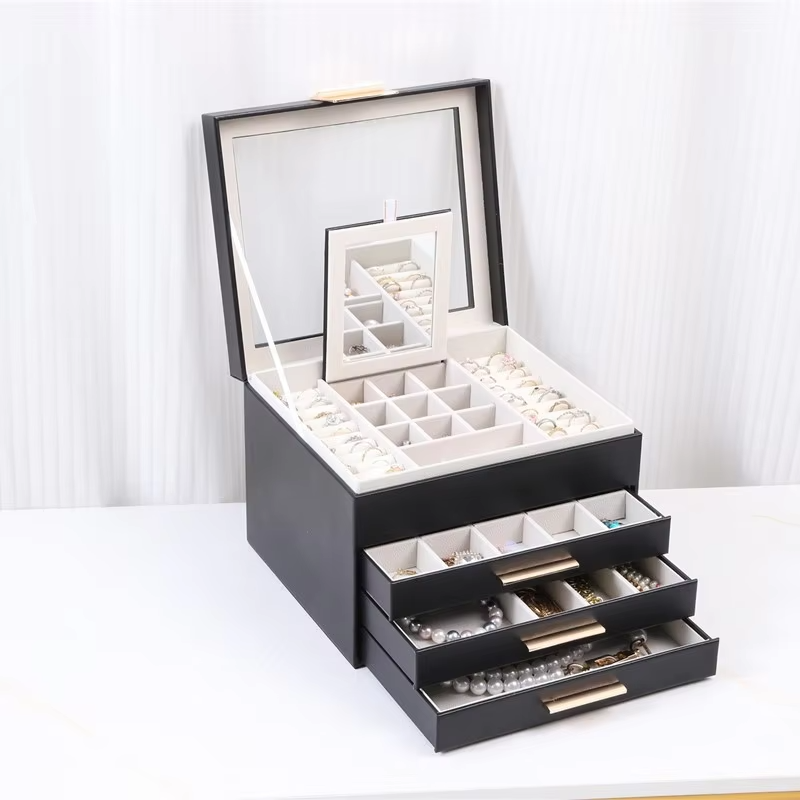 Wholesale Multi Layer Jewelry Storage Box With Clear Top Lid And 3 Drawers Leather Jewelry Organizer For Necklaces Rings