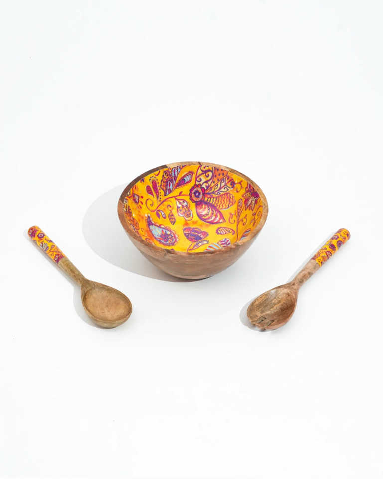 Wholesale Multicolor Enamel Wooden Bowl Set Party Serving Solutions