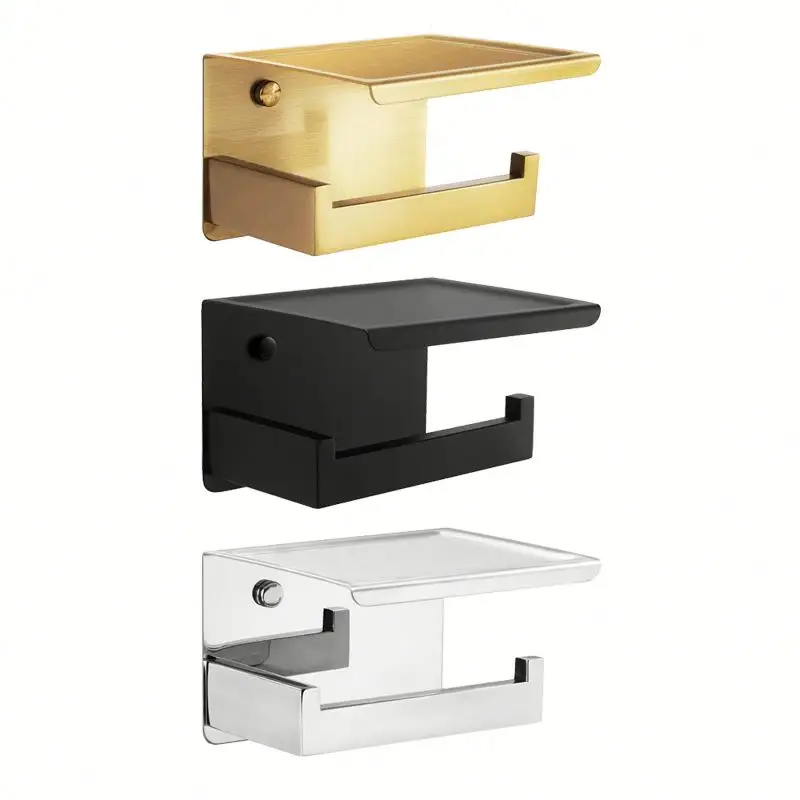 Wholesale Multifunctional Decorative Waterproof Metal Self Adhesive Tissue Shelf Storage Toilet Paper Holder