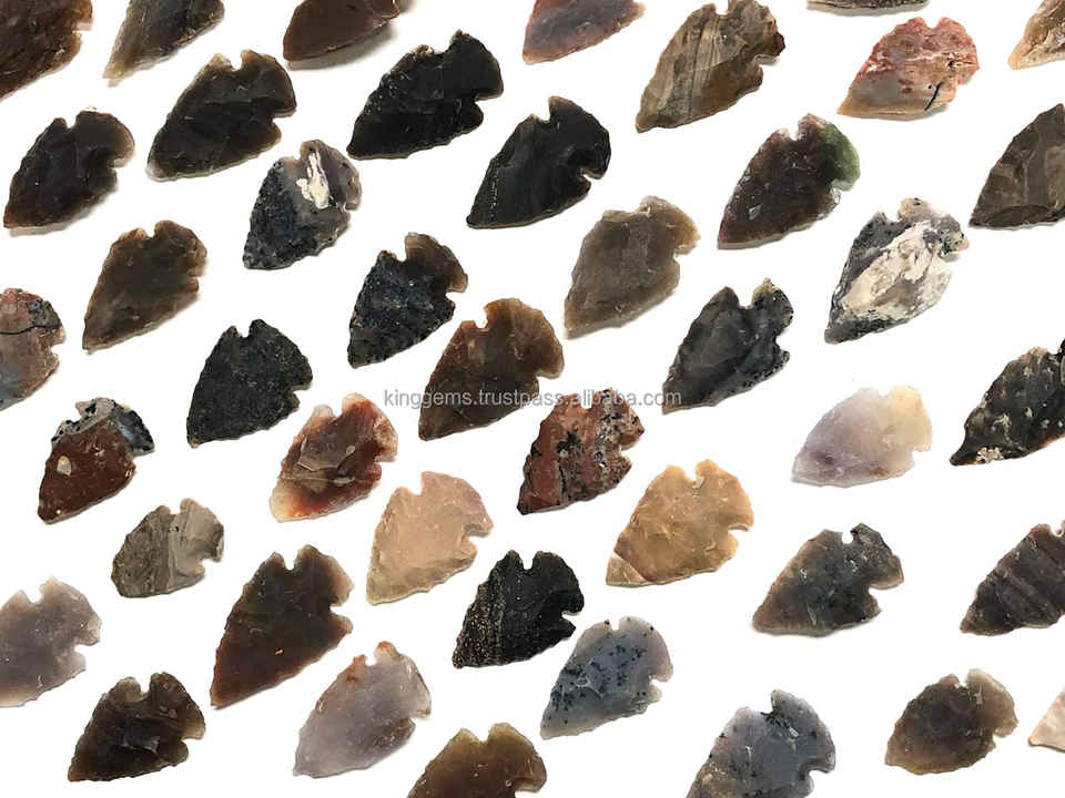 Wholesale Natura Fancy Agate Arrowhead Gemstone 1-1.5 Inch Handmade KINGGEMS Through-Carved Figurine Feng Shui Home Decoration
