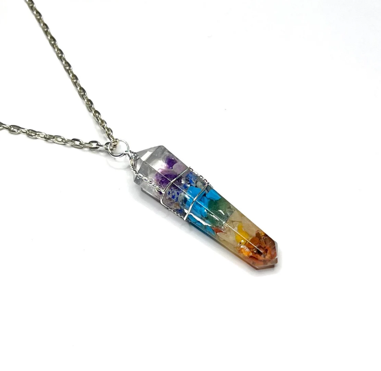 Product name:7 Chakra Gemstone Orgonite Wire Wrapped Pendant