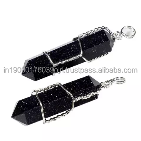 Wholesale Natural Agate Stone Crystals Healing Double terminated Gemstone Pencil Point Wire Wrapped Pendant Necklace
