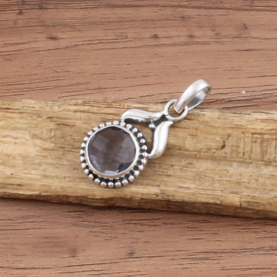 Wholesale Vintage Natural Amethyst Pendant 925 Sterling Silver Platinum Plated Dotted Handmade Gemstone Charm Manufacturer Bulk