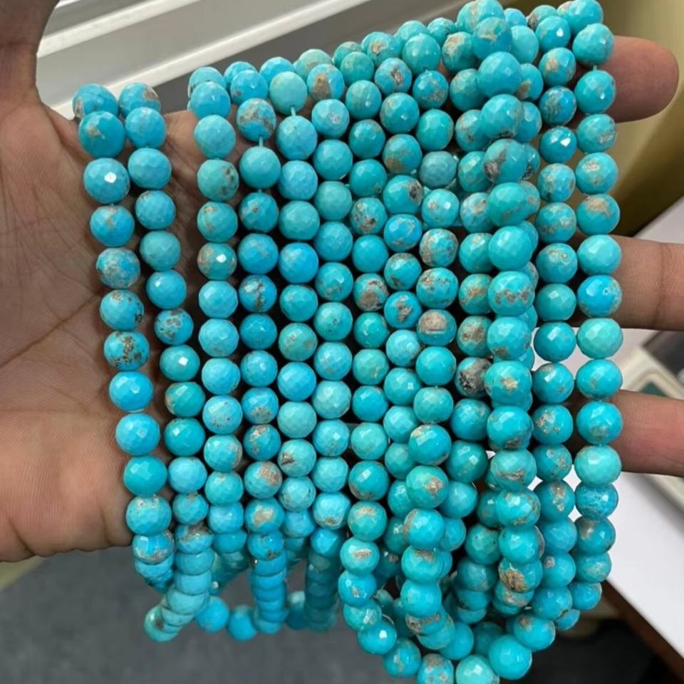 Quality 100% Natural Arizona Turquoise Faceted Round Beads