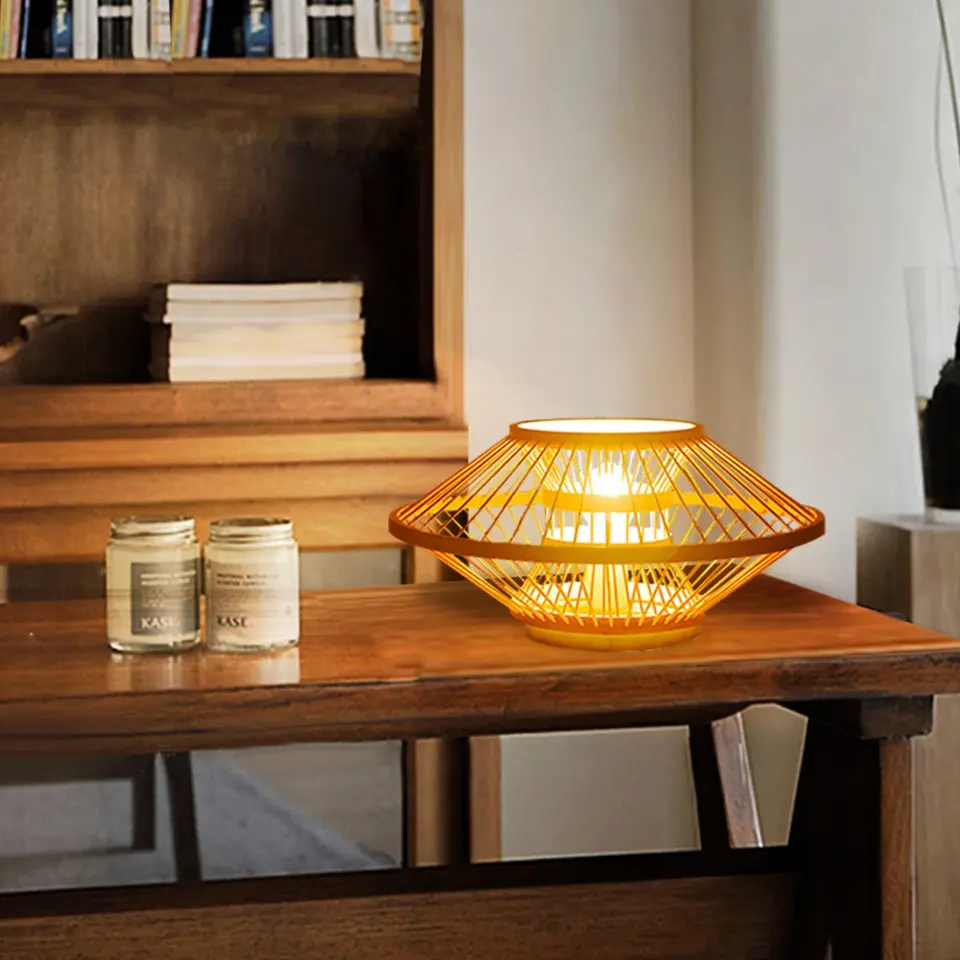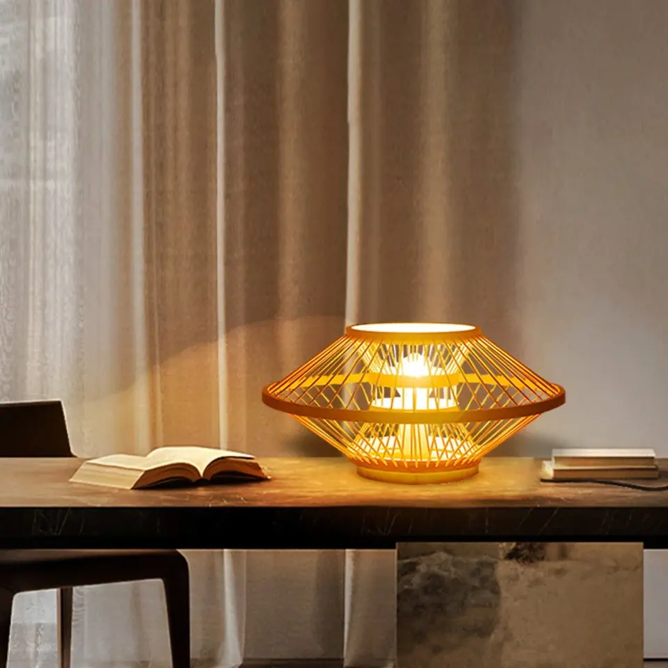 Wholesale Natural Bamboo Table Lamp Boho Wicker Bamboo Lamp Handcrafted Bamboo Table Light for Home