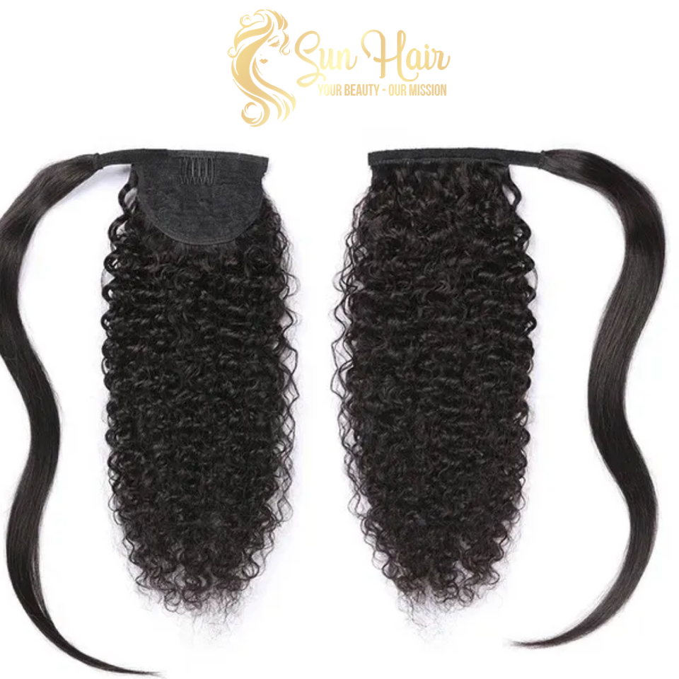Wholesale Natural Black Curly Clip-in Ponytail Hair Extensions Loose Deep Wave Vietnamese Hair Wrap around Hairpieces
