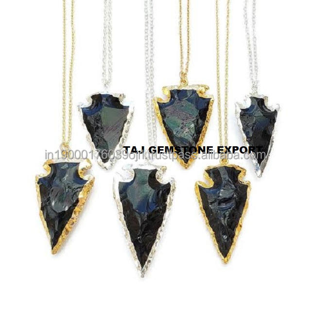 Wholesale Natural Black Obsidian Crystal Crafts Native Hunting Flint Gemstone Arrowhead Pendant Necklace Healing Stone Flite