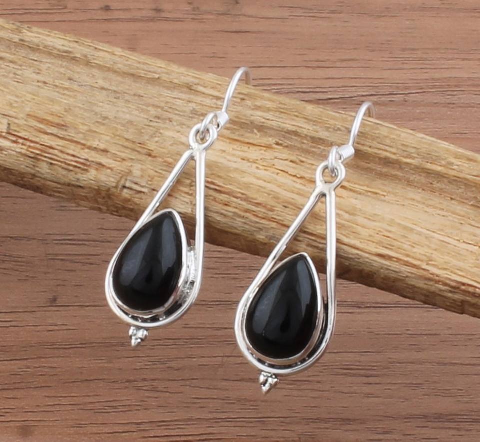 Wholesale Natural Black Onyx Drop Earrings 925 Sterling Silver Luxury Jewelry Bulk Factory Price