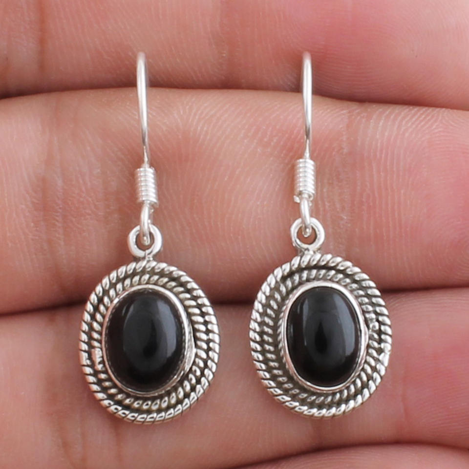 Wholesale Natural Black Onyx Earrings 925 Sterling Silver Geometric Gemstone Stud Earrings Women Men Fine Jewelry Manufacturer