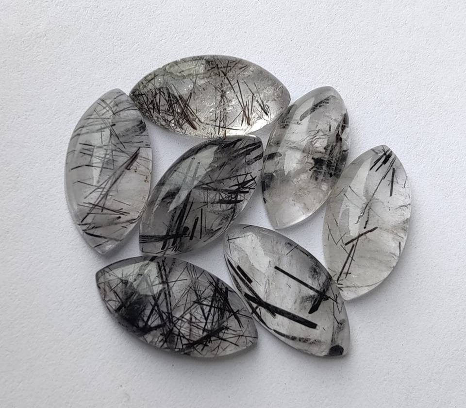 Wholesale Lavira Brand Natural Black Rutile Marquise Cut Cabochon Calibrated Flat Back Brazilian Loose Gemstones All Sizes