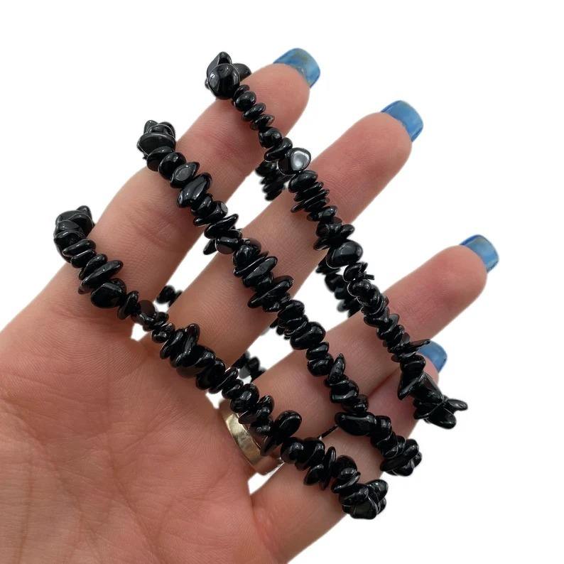 Wholesale Natural Black Tourmaline Gemstone Chips Bracelet for Women Crystal Clear Irregular Gravel Chips Bracelet for Souvenirs