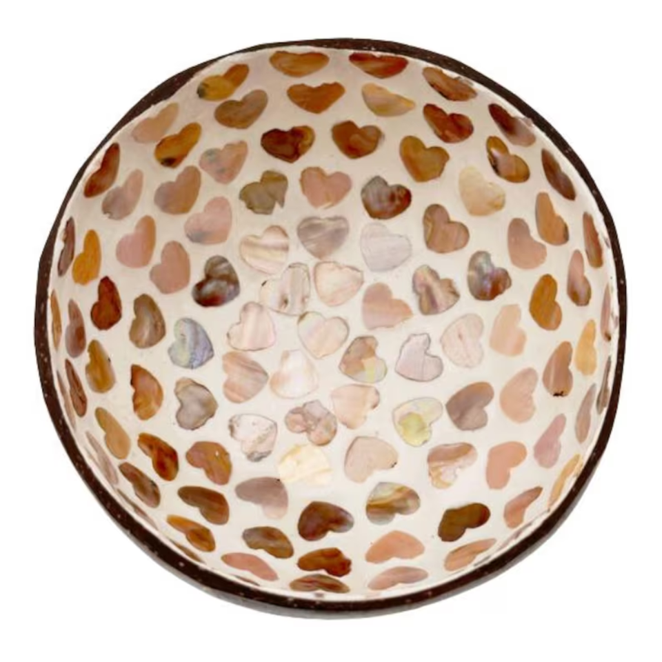 Wholesale Natural Coconut Smoothie Bowl Set with Mother of Pearl Inlay Plate Dish Made in Vietnam for Valentine's Day Gift