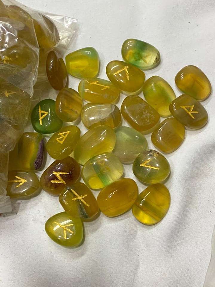 Multi Fluorite Rune Set Top Selling Natural Crystal Gemstone Agate Carved Engraving Style Love Technique Reiki Set