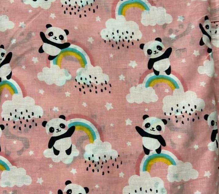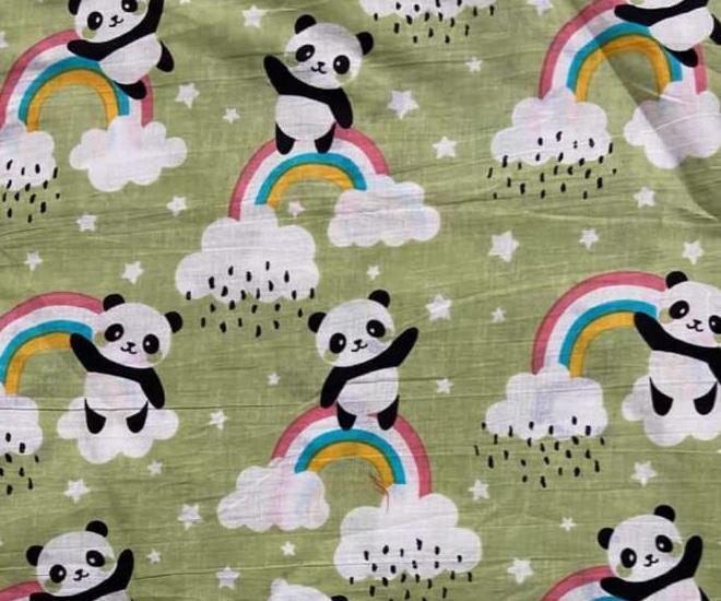 Wholesale Natural Dye Cotton Panda Screen Printed by Yard Material Summer Kids Dress Maxi Skirt Night Suit Shirts Baby Clothing