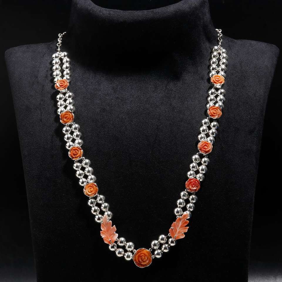 Wholesale Natural Flower Shaped Orange Oyster Gemstone Bezel Set 925 Sterling Silver Pendant Necklace Gift for Women and Girls