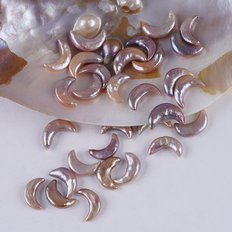 Wholesale Natural Freshwater Pink Pearls Purple Moon Shaped Loose Particles for DIY Necklace Jewelry