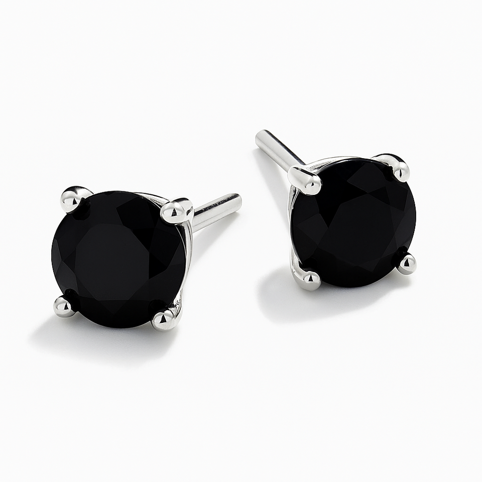 Wholesale Romantic Natural Gemstone Jewelry Rhodium-Plated Sterling Silver Black Onyx Cut Stud Earrings Children's Gift Weddings