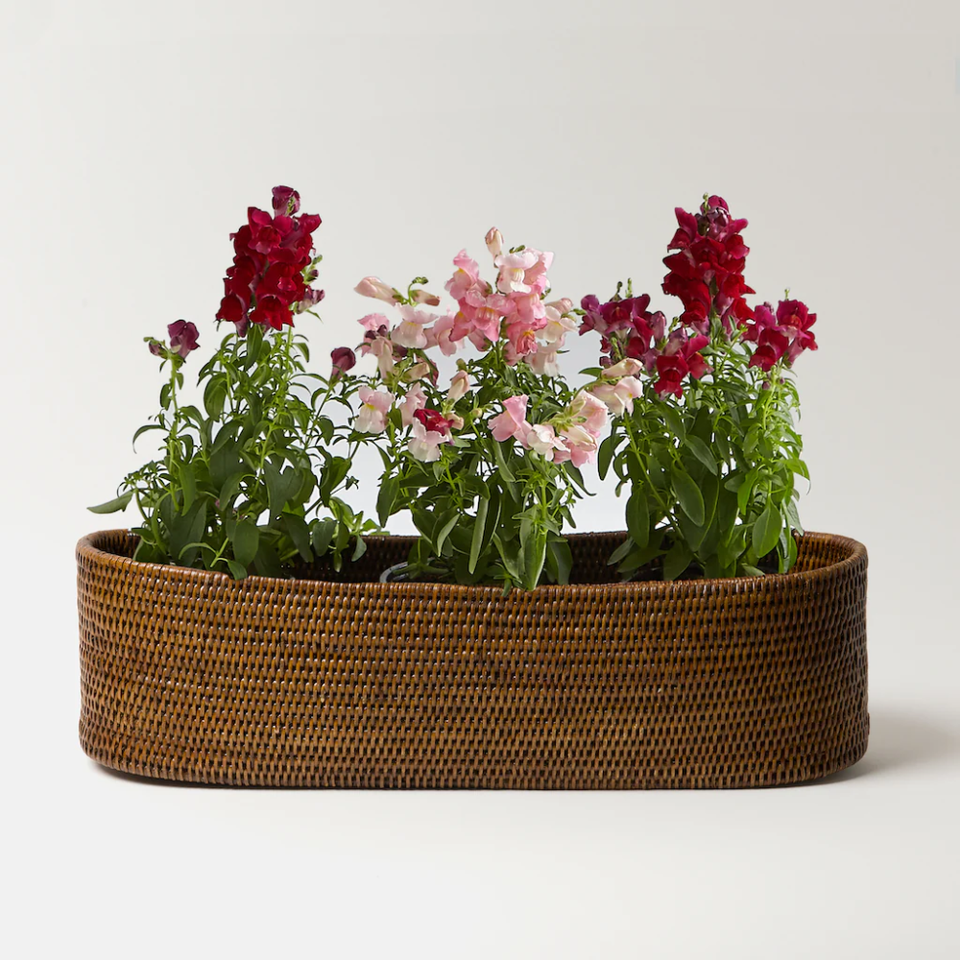 Wholesale Natural Long Oval Rattan Planter Eco-friendly Rustic Rattan Basket Kitchenware Table Top Handcrafted From Vietnam